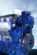 The medium speed 4 stroke trunk piston engine can be found on most medium to large merchant vessels even if the main engine is either a steam turbine or a 2 stroke crosshead engine. In these cases it will often be found that the electrical power is supplied by alternators driven by medium speed 4 stroke engines. They are the favoured method of propulsion on ships where head room is a minimum, for instance, on ferries and passenger vessels, and where, as is the current trend for these ships, diesel electric propulsion is utilised. Diesel electric propulsion allows the engines to be placed wherever is most suitable, as they no longer have to be aligned with reduction gearing and shafting as is the case with conventional installations. Generally, medium speed engines run at between 250 - 850 RPM. Above this range they are defined as high speed engines. Although not as powerful as their 2 stroke crosshead cousins, the largest 4 stroke engines are delivering just over 2000kW per cylinder. Advances in design and materials have led to an increase in efficiency, together with an increase in turbocharger pressure ratios which allow a greater quantity of fuel to be burnt per cycle. Medium speed engines have a higher power to weight ratio than the slow speed two strokes, but due to the higher speeds tend to have reduced maintenance intervals. The largest of these engines have a bore of 640mm and a stroke of 900mm (Wartsila 64), although engines which are nearly "square" are more the norm: For example, the Sulzer ZA40 has a bore of 400mm and a stroke of 560mm or the MAN-B&W 58/64 which has a bore of 580mm and a stroke of 640mm. A square engine is one where the bore is equal to the stroke.