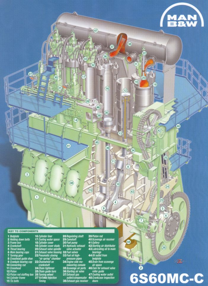 Menu The Bedplate The A Frames The Entablature The Tie Bolts The Crankshaft The Con Rod The Crosshead The Stuffing Box The Cylinder Liner The Piston The Camshaft The Exhaust Valve The Fuel Pump The Fuel Injector The Turbocharger MANB&W Engine
