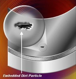 Babbitt metal is soft and easily damaged, and seems at first sight an unlikely candidate for a bearing surface, but this appearance is deceptive. The structure of the alloy is made up of small hard crystals dispersed in a matrix of softer alloy. As the bearing wears the harder crystal is exposed, with the matrix eroding somewhat to provide a path for the lubricant between the high spots that provide the actual bearing surface.